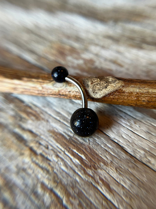 Galaxy Blue Goldstone 14G Surgical Steel Curved Barbell
