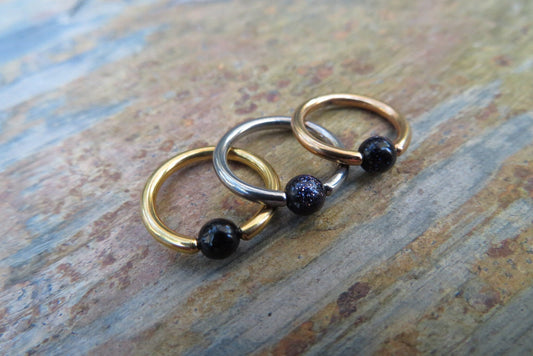 Galaxy Blue Goldstone Surgical Steel CBR Ring