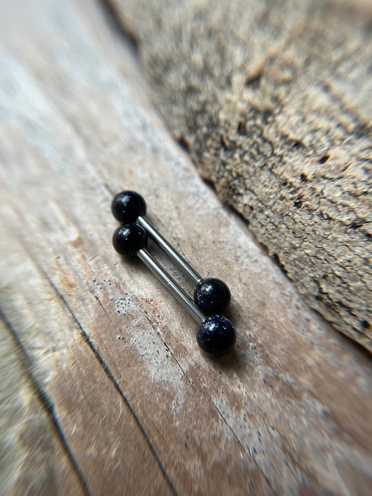 Galaxy Blue Goldstone 316L Surgical Steel Tongue Nipple Barbell