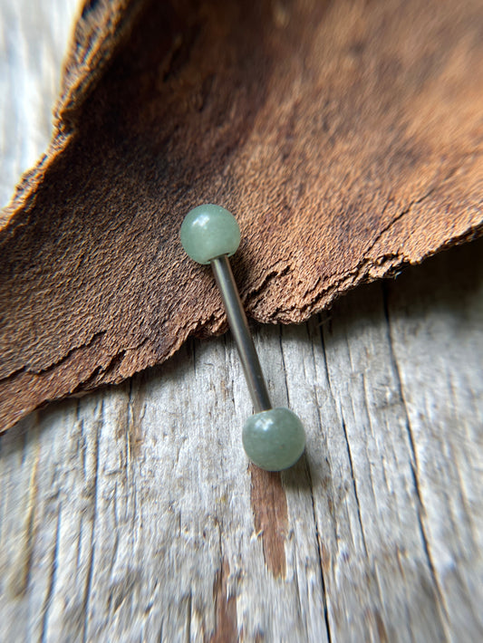 Green Aventurine Natural Stone 316L Surgical Steel Tongue Nipple Barbell