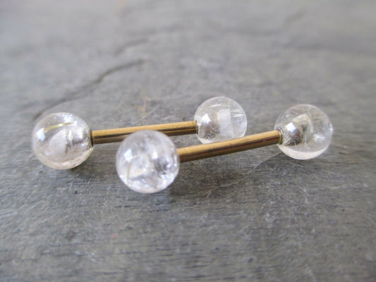 Golden Rutile Quartz Natural Stone ASTM F-136 Implant Grade Titanium Tongue Nipple Barbell