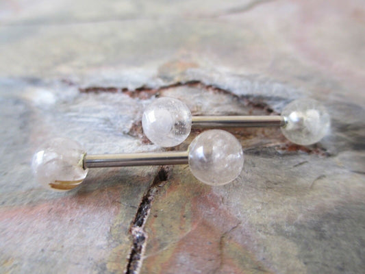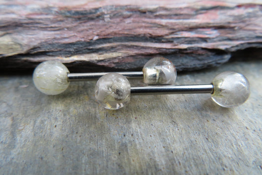Golden Rutile Quartz Natural Stone 316L Surgical Steel Tongue Nipple Barbell