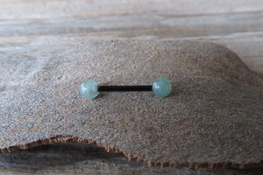 Green Aventurine Natural Stone Black Titanium Ion Plated Tongue Nipple Barbell