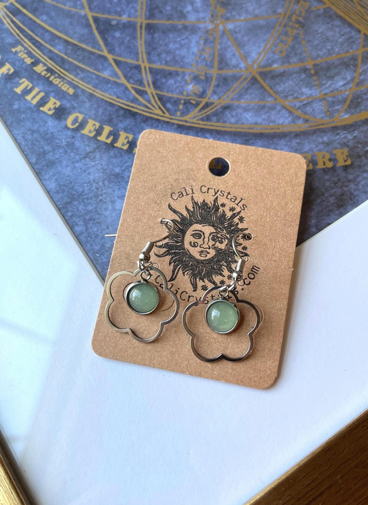 Green Aventurine Natural Stone 90's Vibes Flower Earrings