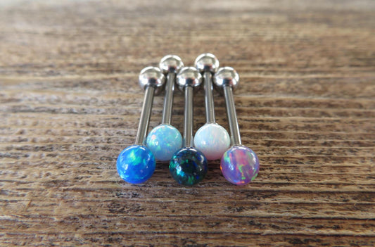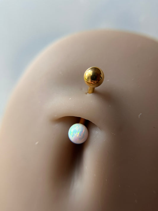 Internally Threaded Aurora White Fire Opal Steel or Titanium 14G Belly VCH Barbell