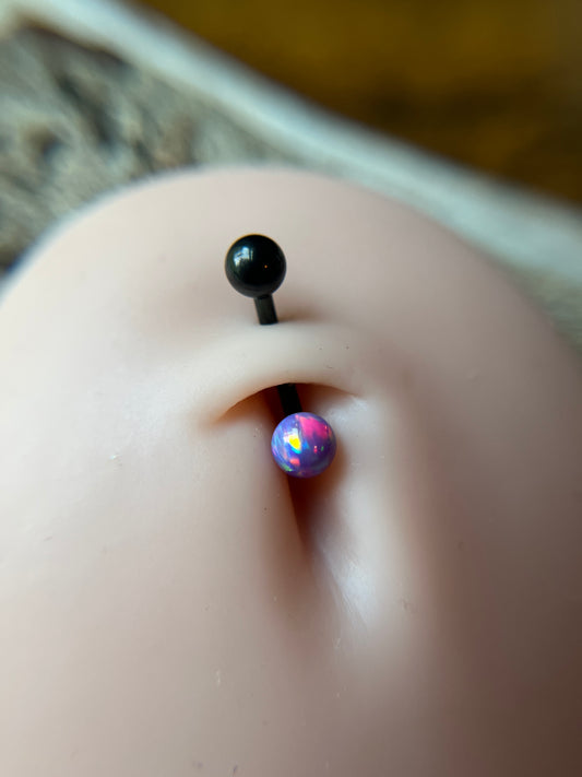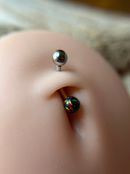 Internally Threaded Autumn Black Fire Opal Steel or Titanium 14G Belly VCH Barbell