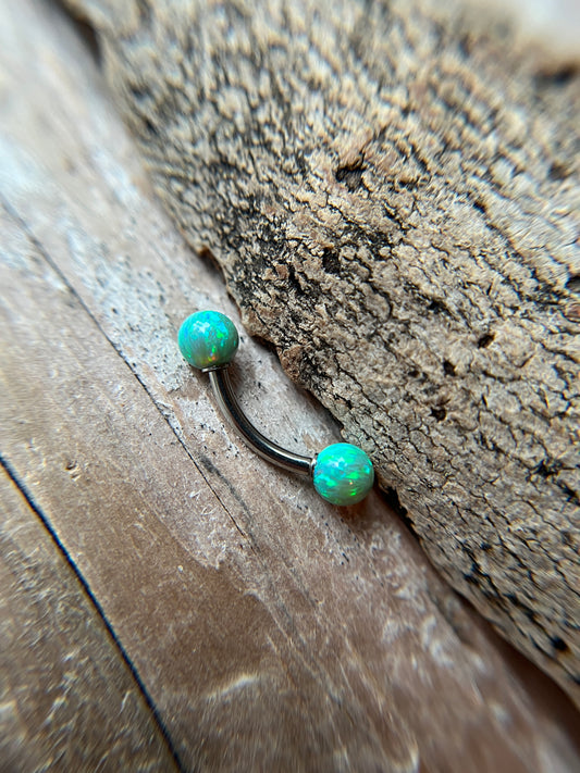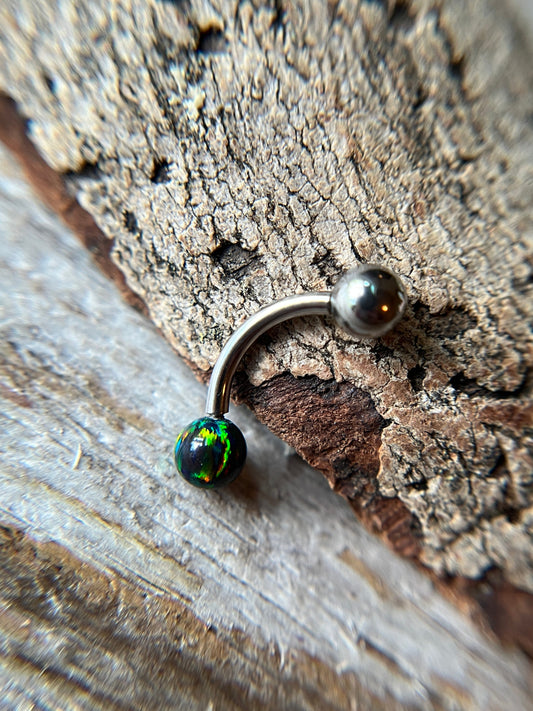 Jade Green Fire Opal Steel or Titanium 14G Belly VCH Barbell