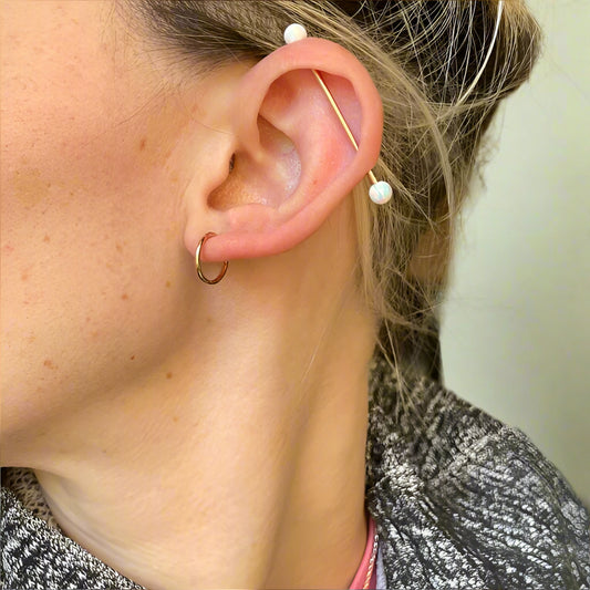 Internally Threaded Aurora White Fire Opal Gold, Rose Gold or Black 14G Belly VCH Barbell