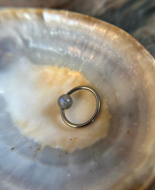 Labradorite Natural Stone ASTM F-136 Implant Grade Titanium CBR Ring