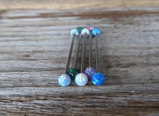Jade Green Fire Opal Steel or Titanium 14G Industrial Barbell