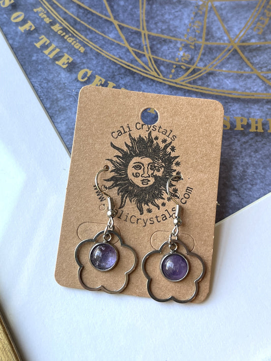 Amethyst Natural Stone 90's Vibes Flower Earrings