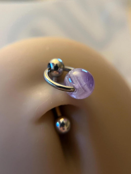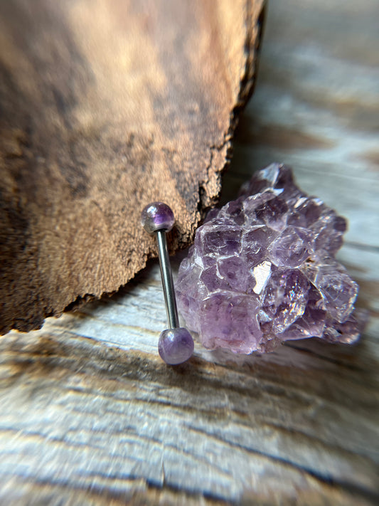 Amethyst Natural Stone 316L Surgical Steel Tongue Nipple Barbell