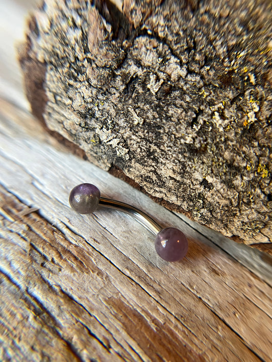 Amethyst Natural Stone 14G Implant-Grade Titanium Curved Barbell