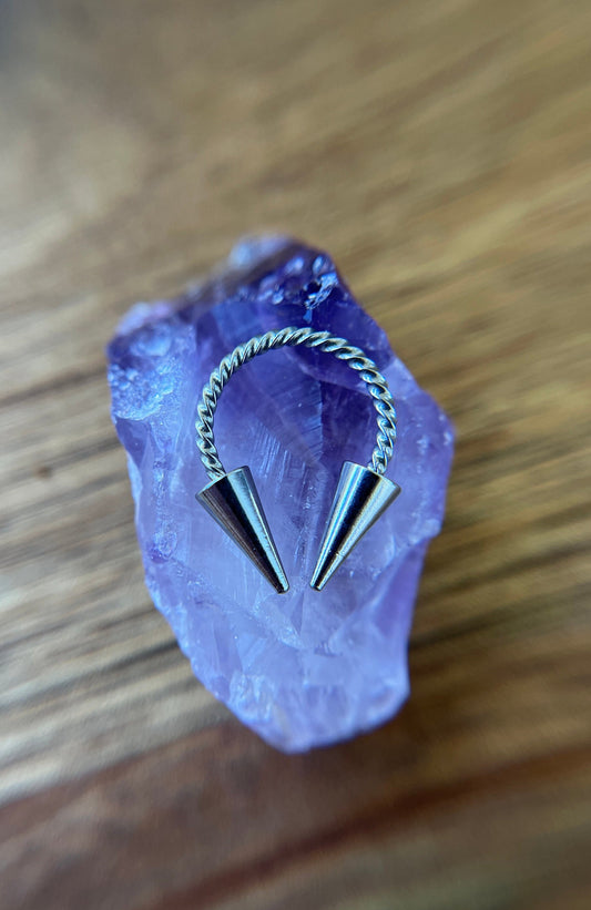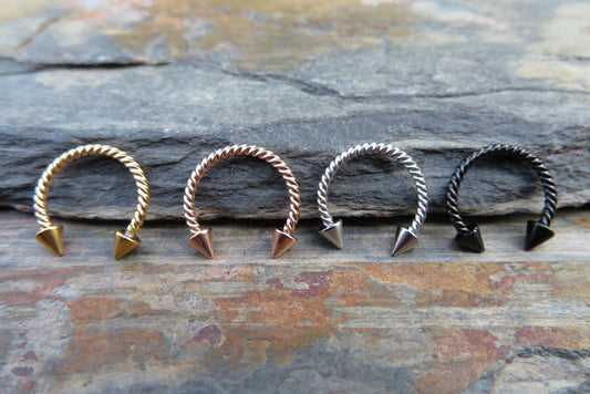 316L Surgical Steel Twisted Spiked 16G Horseshoe Ring