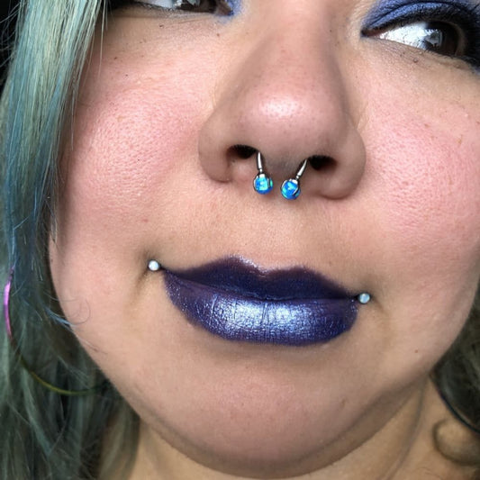 316L Surgical Steel Pronged Purple Fire Opal 16G Horseshoe Ring