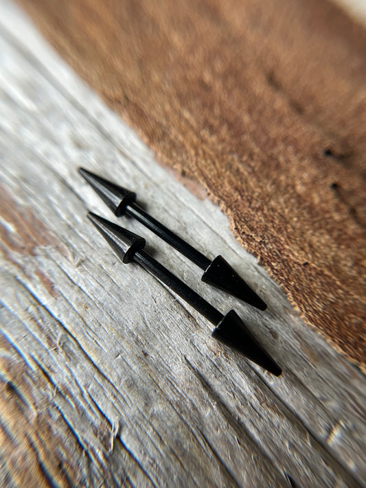 Pair of Long Spikes Black Titanium IP 14G Nipple Piercing Barbells