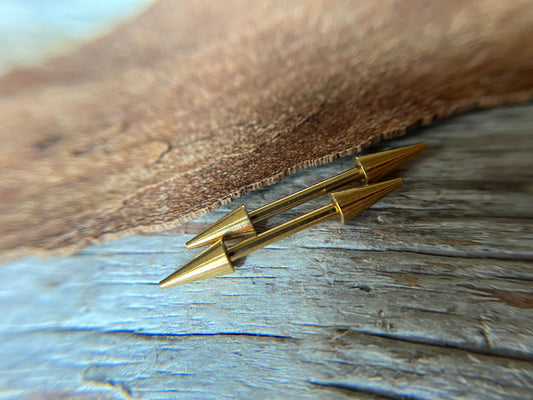 Pair of Long Spikes Gold Titanium IP 14G Nipple Piercing Barbells