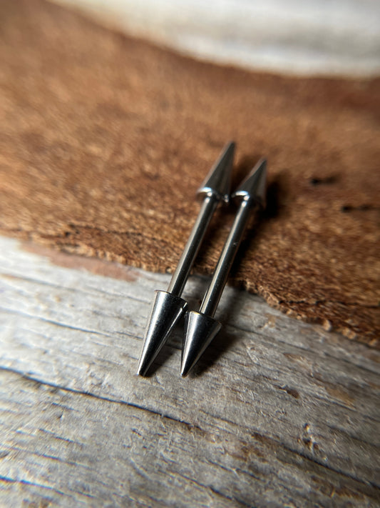 Pair of Long Spikes 316L Surgical Steel 14G Nipple Piercing Barbells