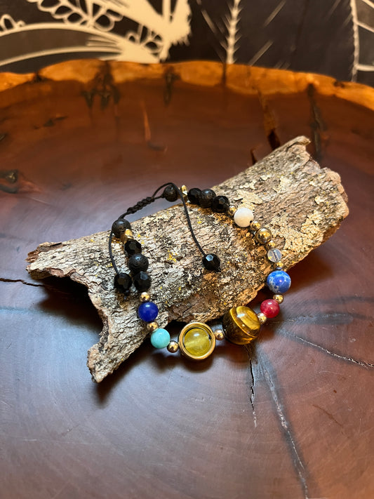 Natural Stone, Lava Rock & Crystal Glass Solar System Macrame Bracelet