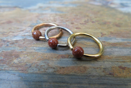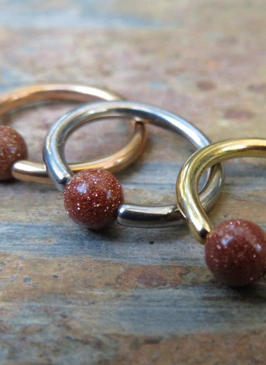 Orange Goldstone Rose Gold Titanium Ion Plated CBR Ring