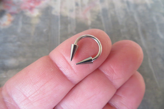 Petite Diameter Size THICK Gauge 12G or 10G Solid 316L Surgical Steel Horseshoe Ring with Long Spikes