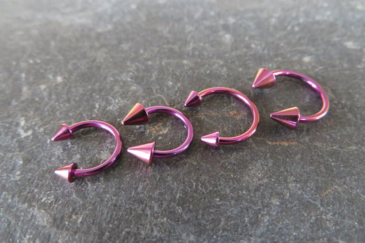 Purple Titanium Plated Pick Your Spike Length 16G Horseshoe Ring