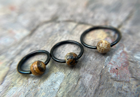 Picture Jasper Natural Stone Black Titanium Ion Plated CBR Ring