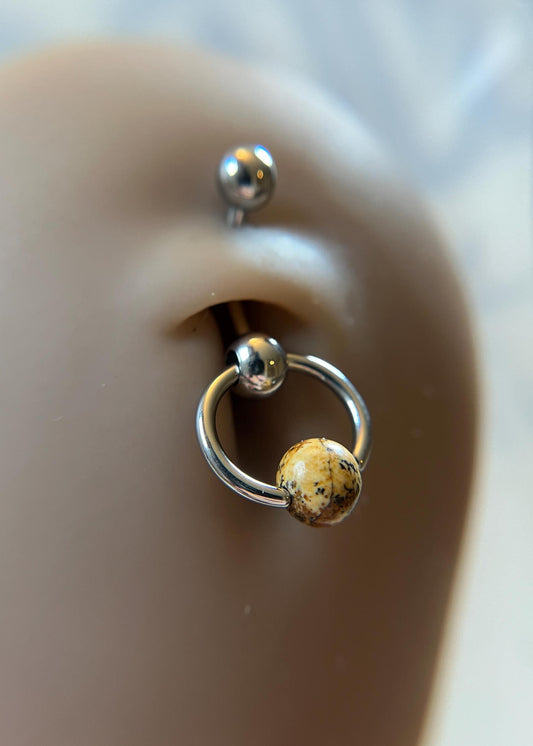 Picture Jasper Natural Stone Surgical Steel CBR Ring