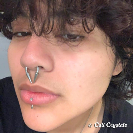 Pick Your Gauge Size (16G - 4G) Horseshoe Ring with Extra Long Spikes Solid Steel