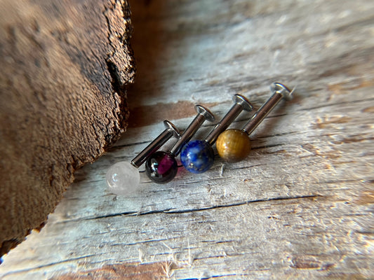 Pick Your Natural Stone 16G Surgical Steel Flat Back Labret Piercing