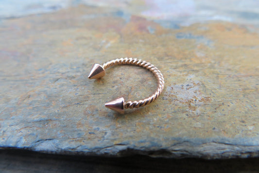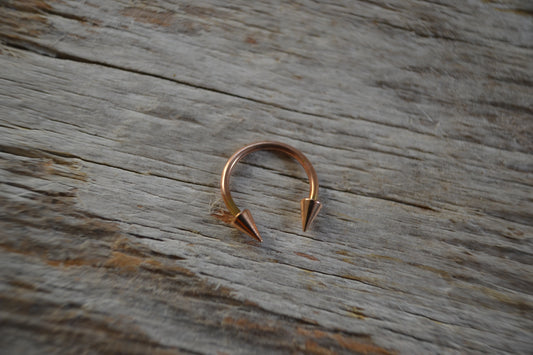 Rose Gold Titanium Ion Plated Twisted Spiked 16G Horseshoe Ring