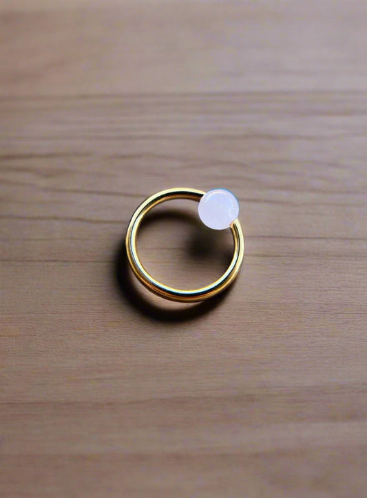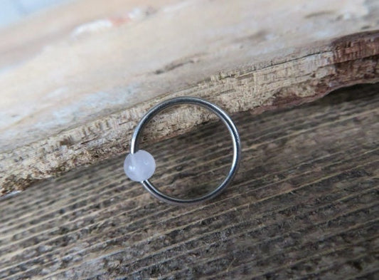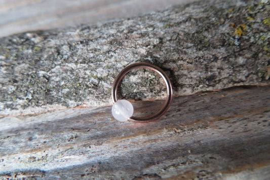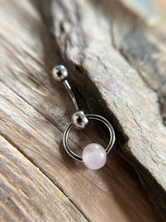 Rose Quartz Natural Stone ASTM F-136 Implant Grade Titanium CBR Ring