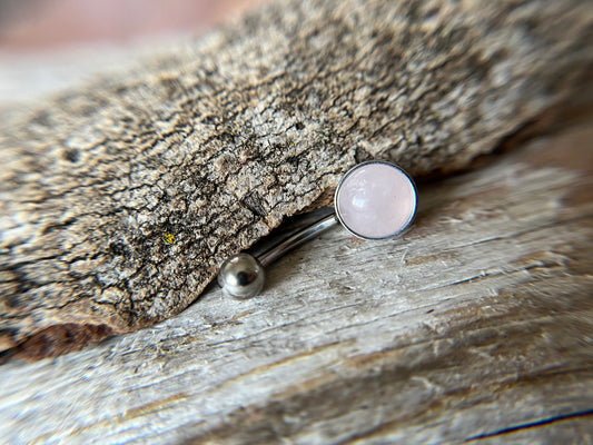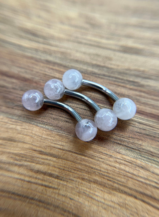 Rose Quartz Natural Stone ASTM F-136 Implant Grade Titanium 14G Curved Barbell