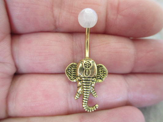 Rose Quartz Natural Stone Ganesha Elephant Belly Ring