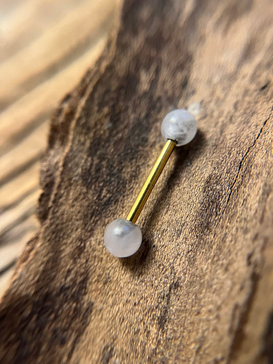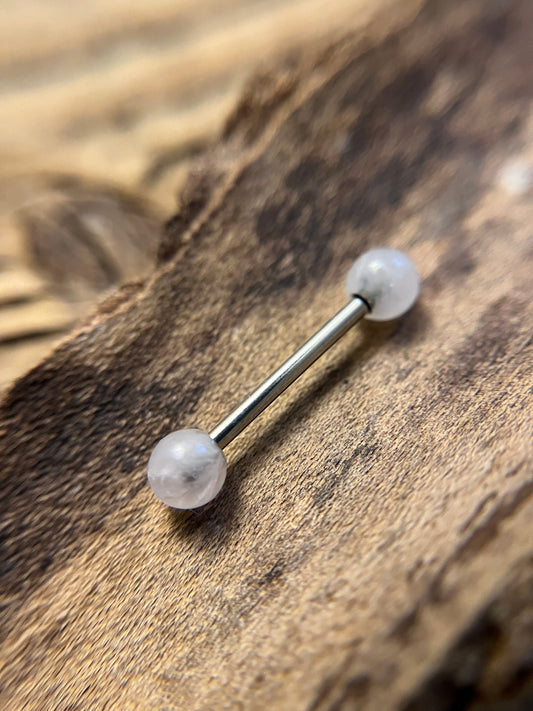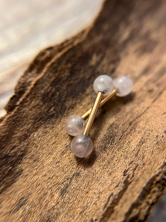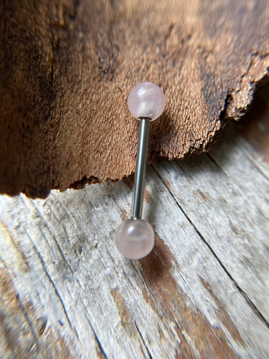 Rose Quartz Natural Stone ASTM F-136 Implant Grade Titanium Tongue Nipple Barbell