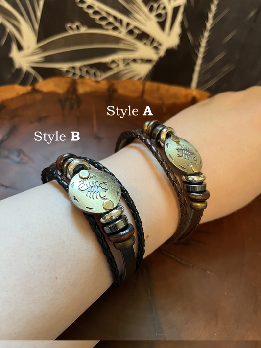 SALE! Leather and Brass Adjustable Zodiac Sign Bracelet
