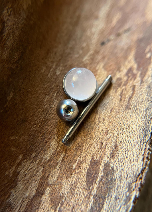 Rose Quartz Petite Natural Stone Pick Your Finish Color 14G Curved Barbell