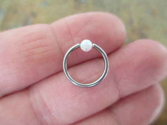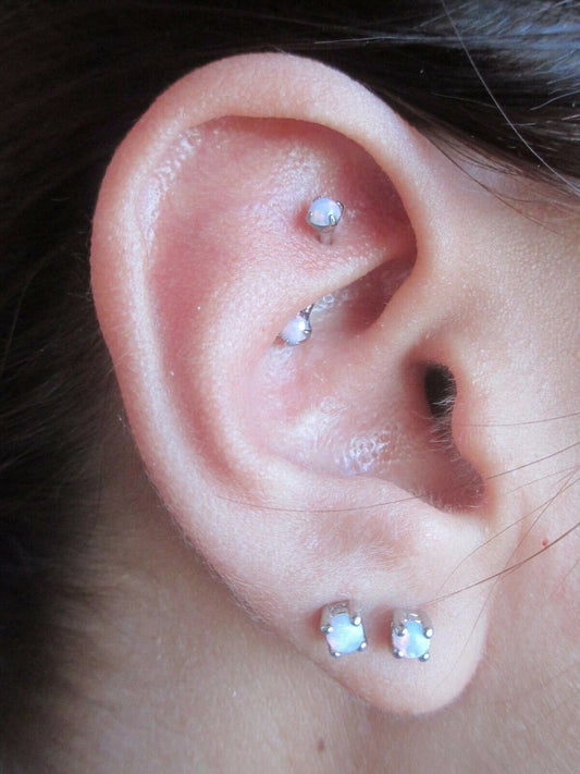 White Fire Opal 316L Surgical Steel 18G or 16G Flat Back Labret