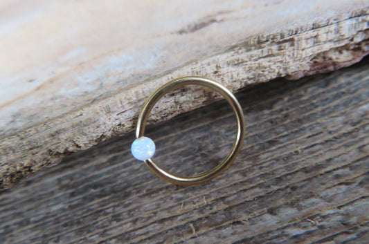 White Fire Opal Gold Titanium Ion Plated CBR Ring