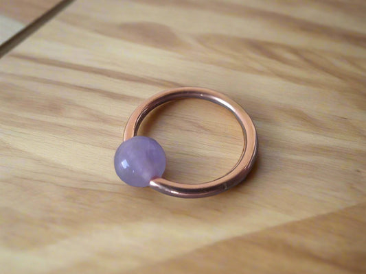 Amethyst Natural Stone Rose Gold Titanium Ion Plated Industrial Barbell