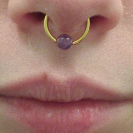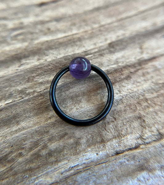 Amethyst Natural Stone ASTM F-136 Implant Grade Titanium CBR Ring