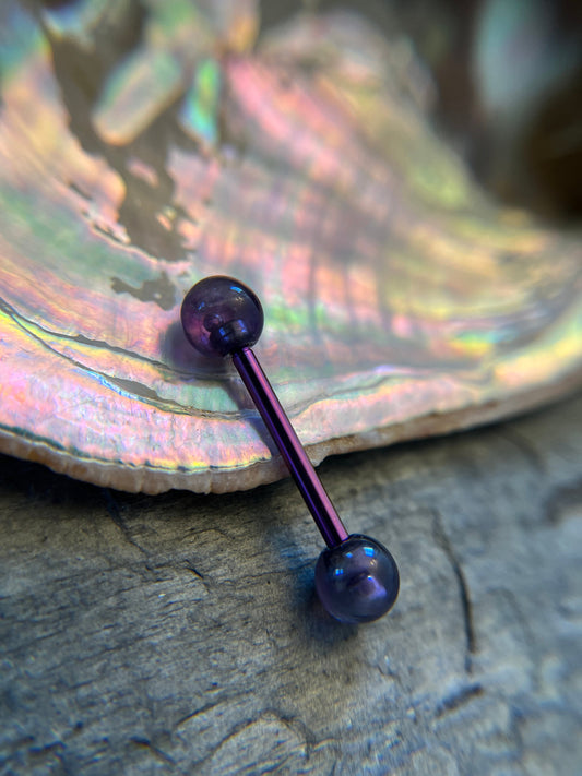 Amethyst Natural Stone Purple Titanium Ion Plated Tongue Nipple Barbell