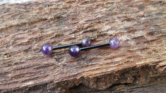 Amethyst Natural Stone ASTM F-136 Implant Grade Titanium Tongue Nipple Barbell