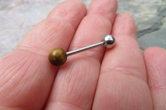 Yellow Tiger's Eye Natural Stone Tongue Piercing Barbell
