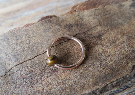 Yellow Tiger's Eye Natural Stone Rose Gold Titanium Ion Plated CBR Ring
