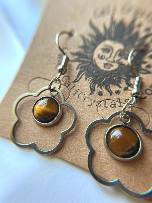 Yellow Tiger's Eye Natural Stone 90's Vibes Flower Earrings