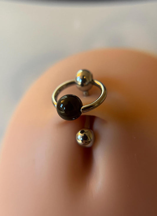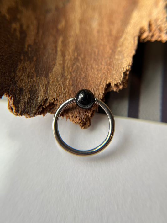 Black Obsidian Natural Stone ASTM F-136 Implant Grade Titanium CBR Ring