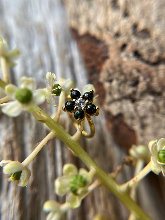 Black Fire Opal Flower 20G Gold Titanium IP Nose Hoop