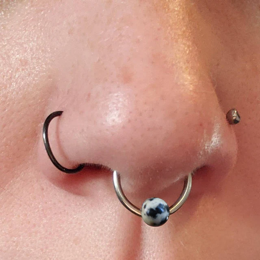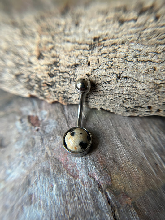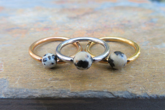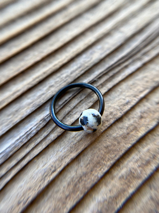 Dalmatian Jasper Natural Stone Surgical Steel CBR Ring