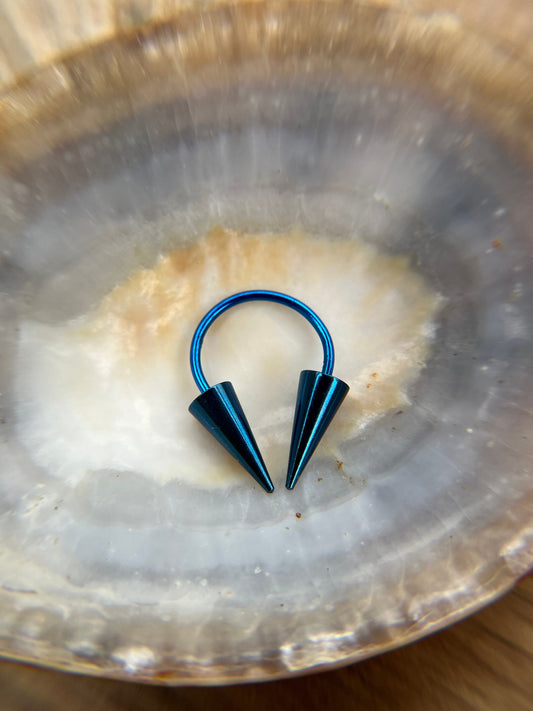 Cobalt Blue Titanium Ion Plated Extra Long Spikes 16G Horseshoe Ring